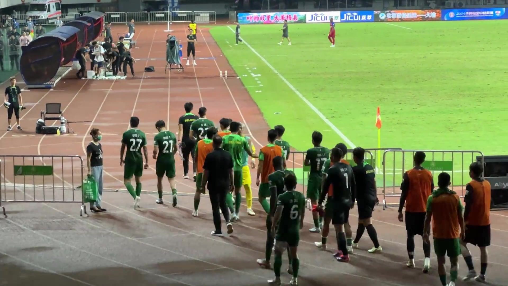 9月21日讯本轮中超,北京国安客场3-1战胜梅州客家。据博主“国安工体是冠军”发布的视频,赛后,郭全博向国安球迷谢场。郭全博鞠躬致谢北京远征球迷,球迷们则喊着球员的名字。今年2月,郭全博从国安自由转会加盟梅州,本赛季各赛事出战了3场比赛。